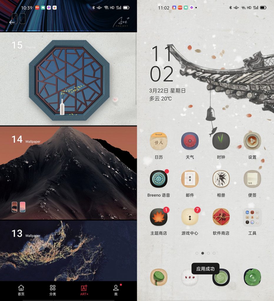ColorOS 7.1 选用轻量多元的规划,图标更轻盈,风格更轻捷。其间,Art+深度定制主题让用户的运用有了更多的美感体会。